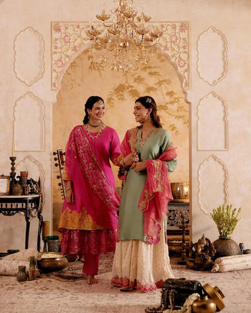 Fresh green Banarasi silk lehenga for vibrant ethnic style