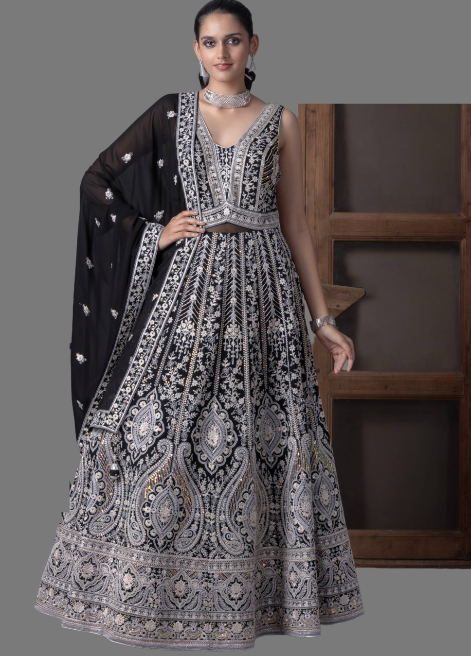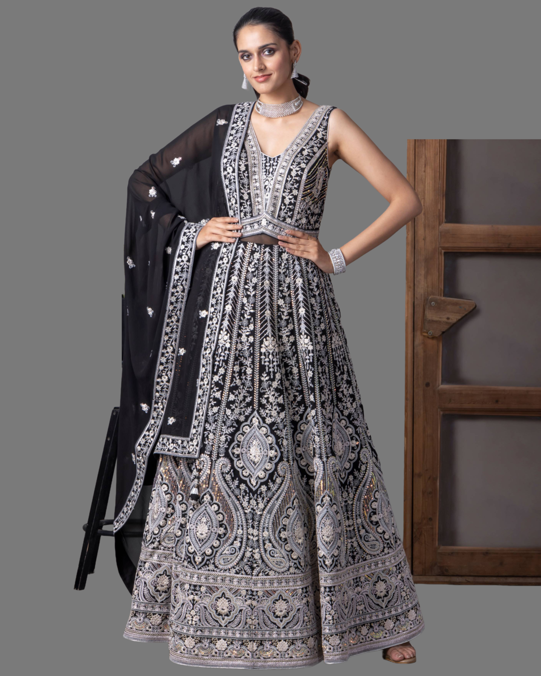 - Color: BlackCrafted in Georgette, this Black Gown flows effortlessly with every step. Its versatile design makes it suitable for cocktail parties, festive events, and formal occasions.