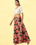 Turn heads with this black premium Anarkali lehenga, featuring a satin silk blend fabric and eye-catching digital floral designs. The outfit is paired with a luxurious silk blouse and a soft shiny silk dupatta that flows beautifully. Perfect for sangeet, wedding reception, and festive events, this lehenga is designed for women who love exclusive ethnic wear collections. Components: Lehenga: Satin Silk Blend (4m flare, 42" length) Blouse: Silk (0.8m) Dupatta: Soft Shiny Silk (2.25m) Size: Semi-stitched, fits up to 42 inches