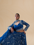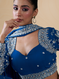 Blue Viscose Banarasi Tissue Lehenga Choli with Four-Side Embroidered Dupatta
