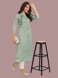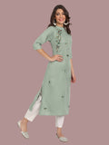 Breezy sea green kurti in cotton blend for relaxed styling
