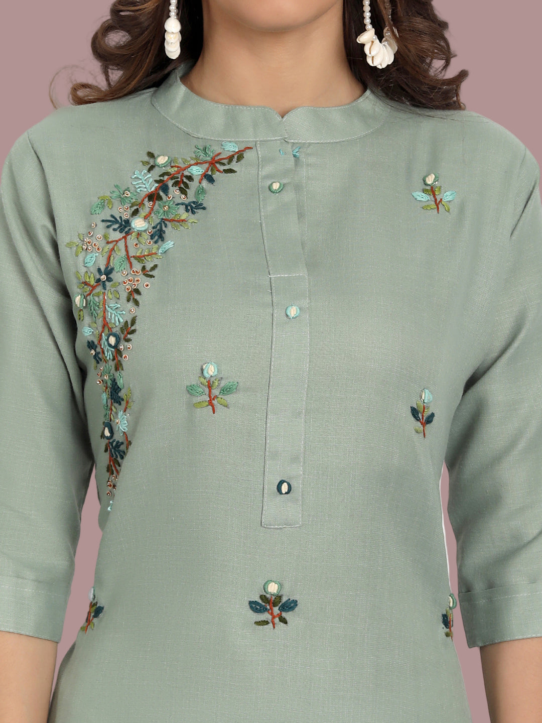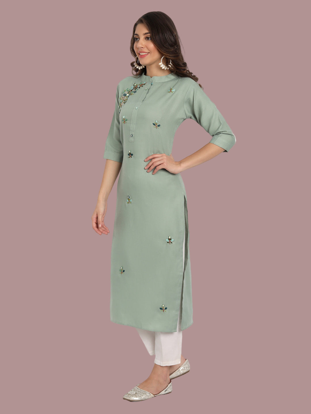 This sea green kurti is crafted from Ruby cotton blend, offering breathable comfort and a flattering fit. Available in M to 7XL.