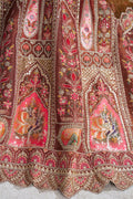 This designer lehenga features Banarasi silk in a coffee shade, paired with a soft net dupatta and unstitched blouse. Semi-stitched for easy customization.