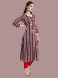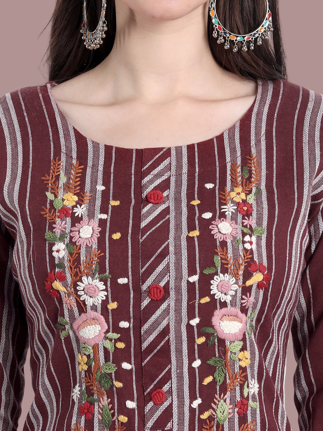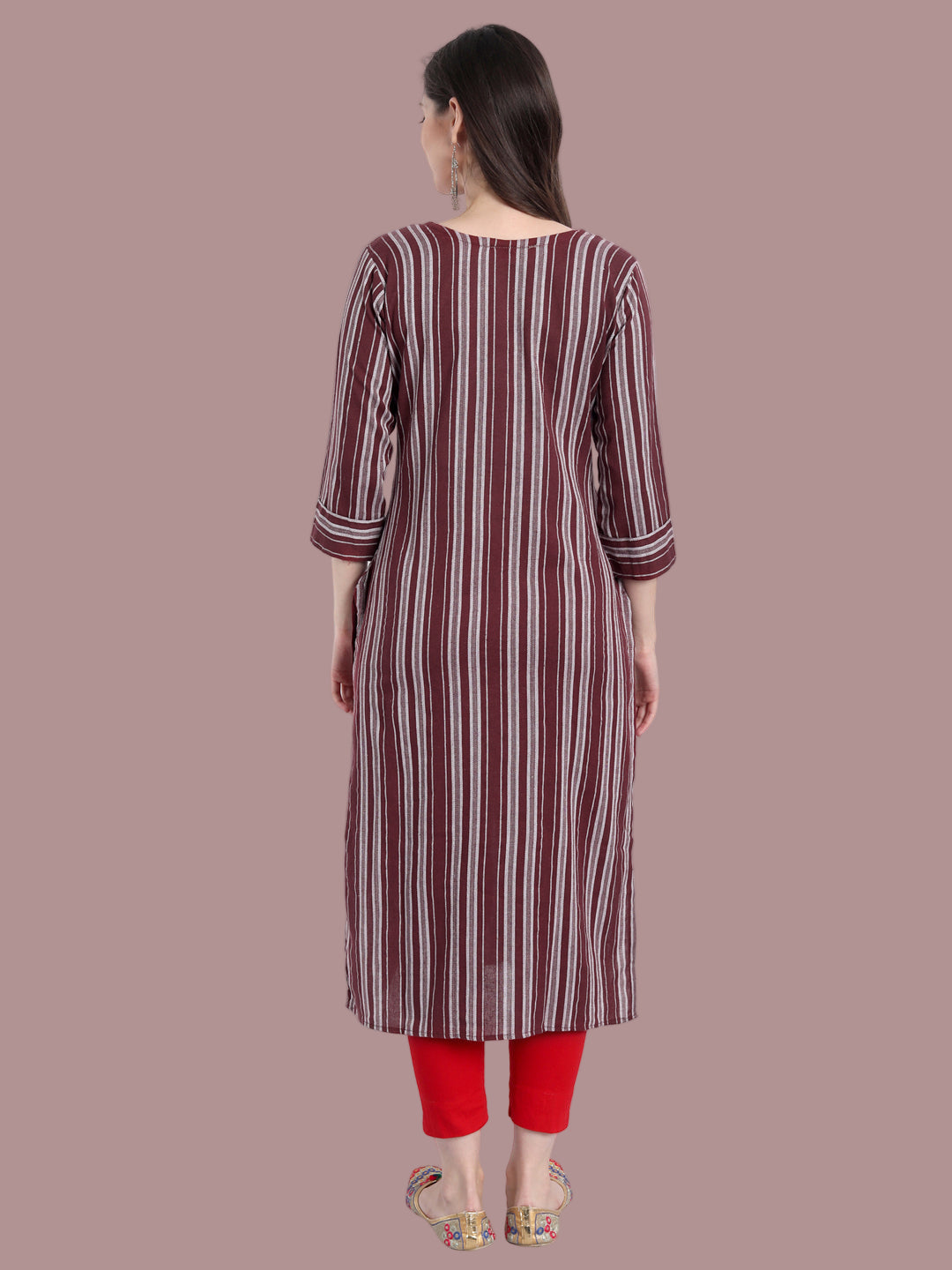 A brown khadi cotton kurti with a straight silhouette, ideal for daily ethnic wear. Sizes M to 7XL.