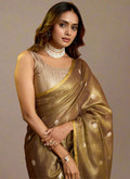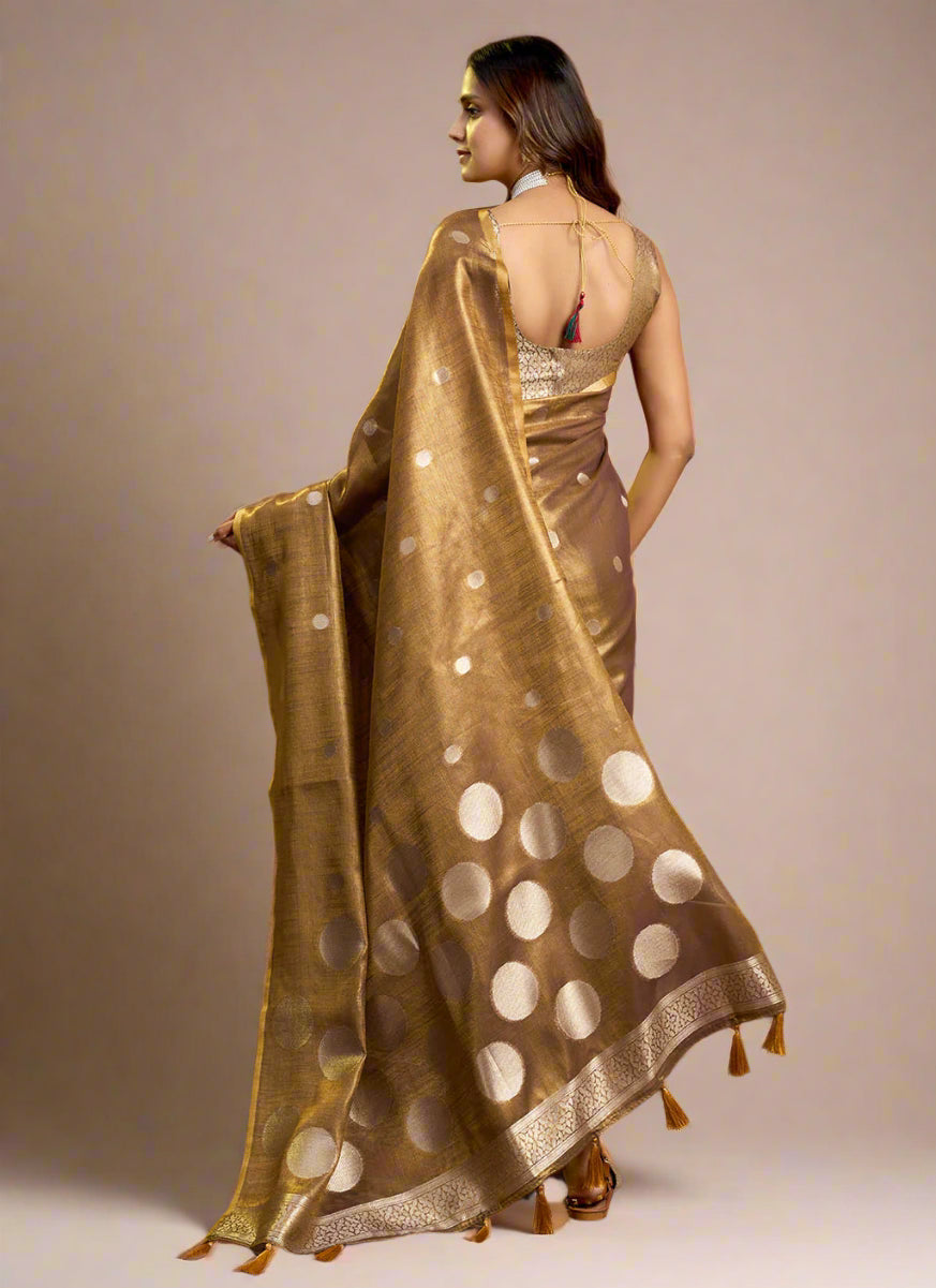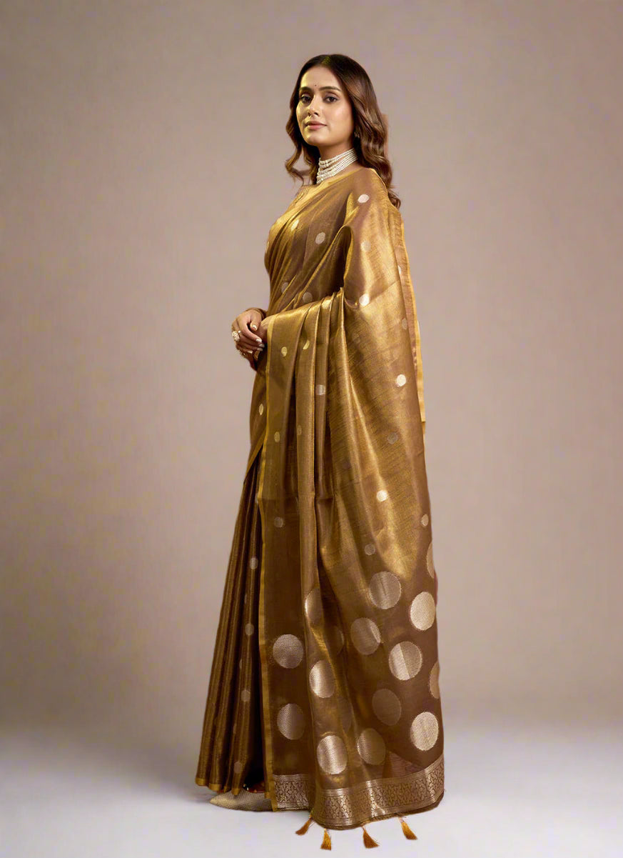 Elegant Brown Tissue Silk Polka Weave Pure Saree with All-Over Weave & Matching Blouse