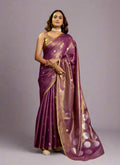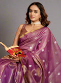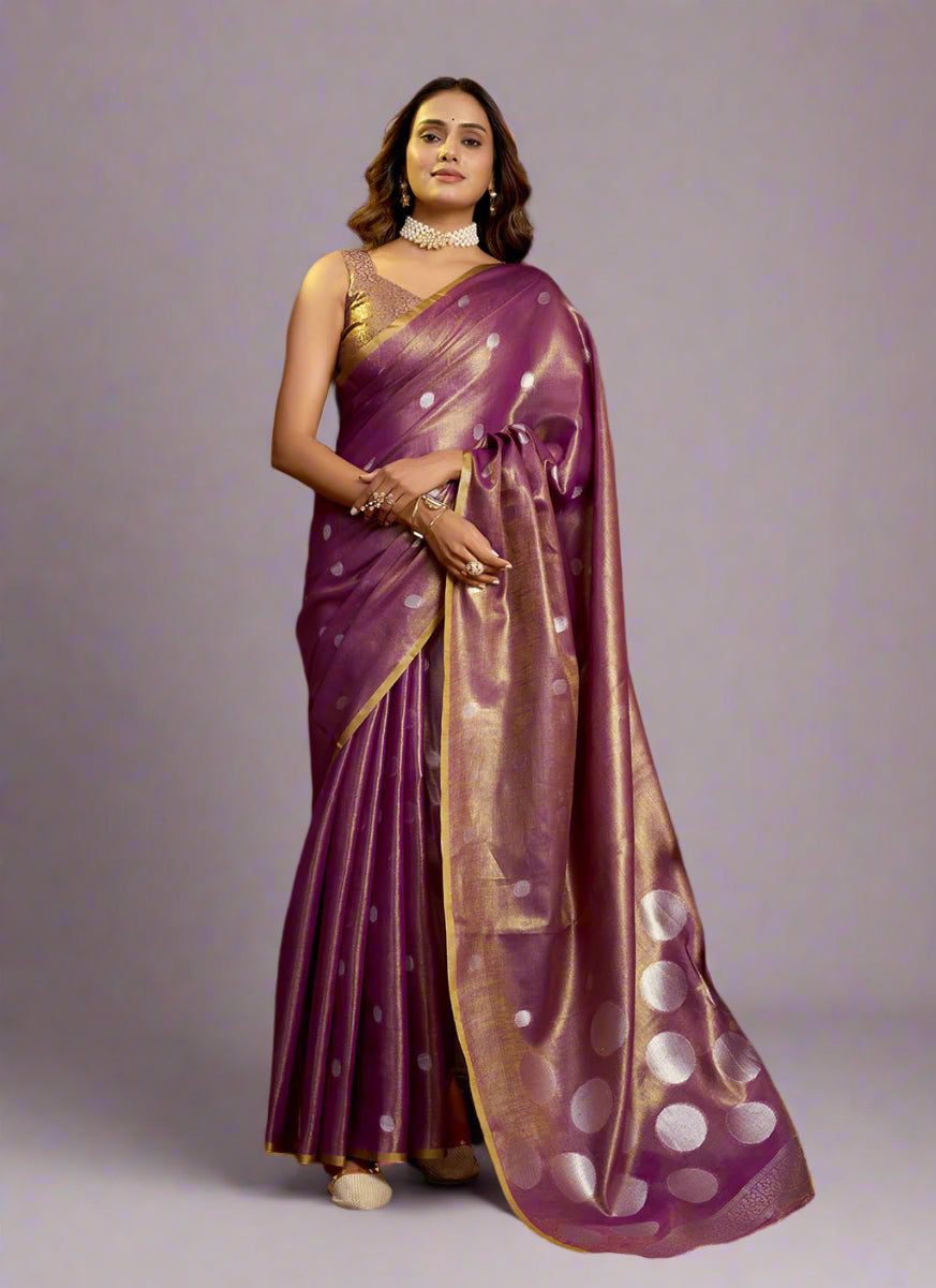 Elegant Violet Tissue Silk Polka Weave Pure Saree with All-Over Weave & Matching Blouse