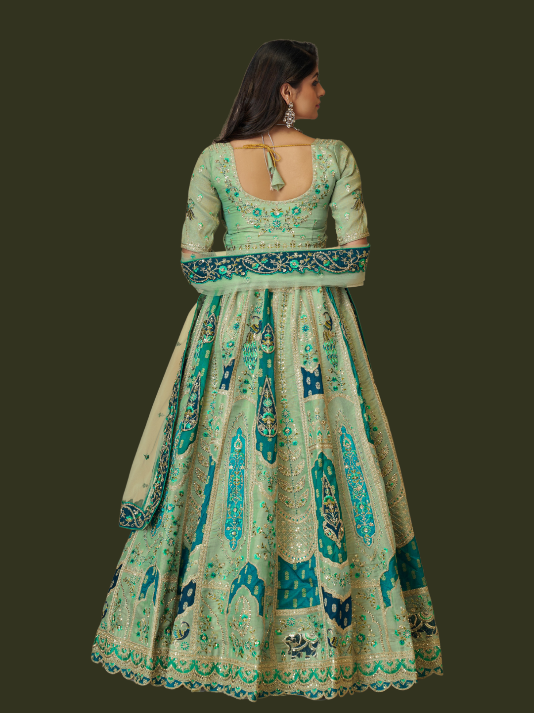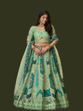 Fresh green Banarasi silk lehenga for vibrant ethnic style
