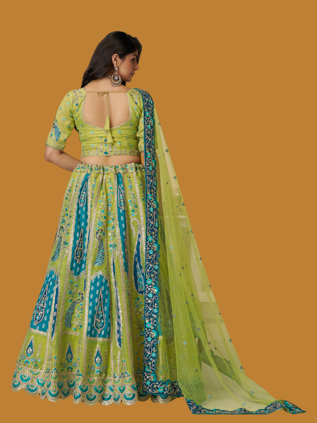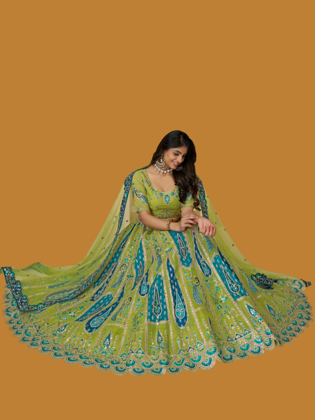 Fresh green Banarasi silk lehenga for vibrant ethnic style