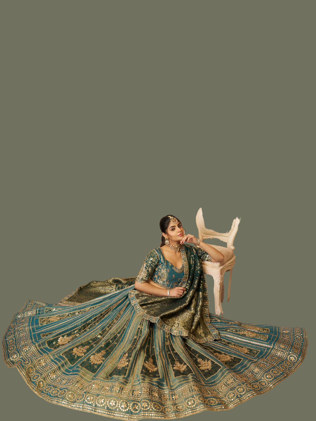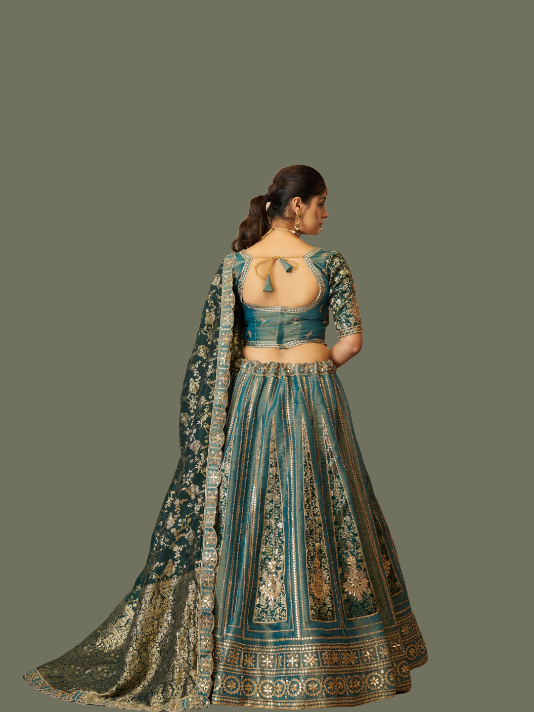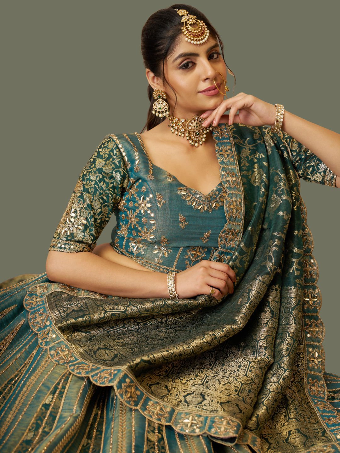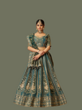 Green Bridal Net Tissue Lehenga with Jacquard Silk Dupatta