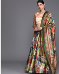 Green Satin Silk Anarkali Lehenga with Traditional Digital Print