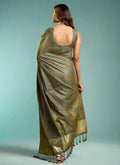 Green Pure Cotton Jamdani Saree with Allover Leaf Butti & Floral Weaving