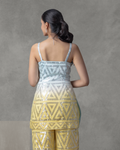 A fusion of Lemon and Blue Pure HO Silk, this Palazzo Set comes with subtle sequins detailing. A perfect mix of comfort and occasion-ready style.