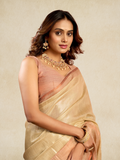 Light Brown Plain Tissue Silk Saree with Contrast Weave Border