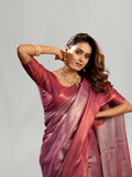 Magenta Plain Tissue Silk Saree with Contrast Weave Border
