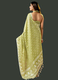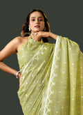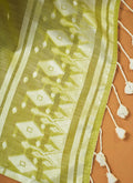 Mehendi Green Pure Cotton Jamdani Saree with Floral & Leaf Butti Weaving