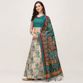 Off-White Satin Silk Anarkali Lehenga with Ethnic Digital Print & Silk Dupatta