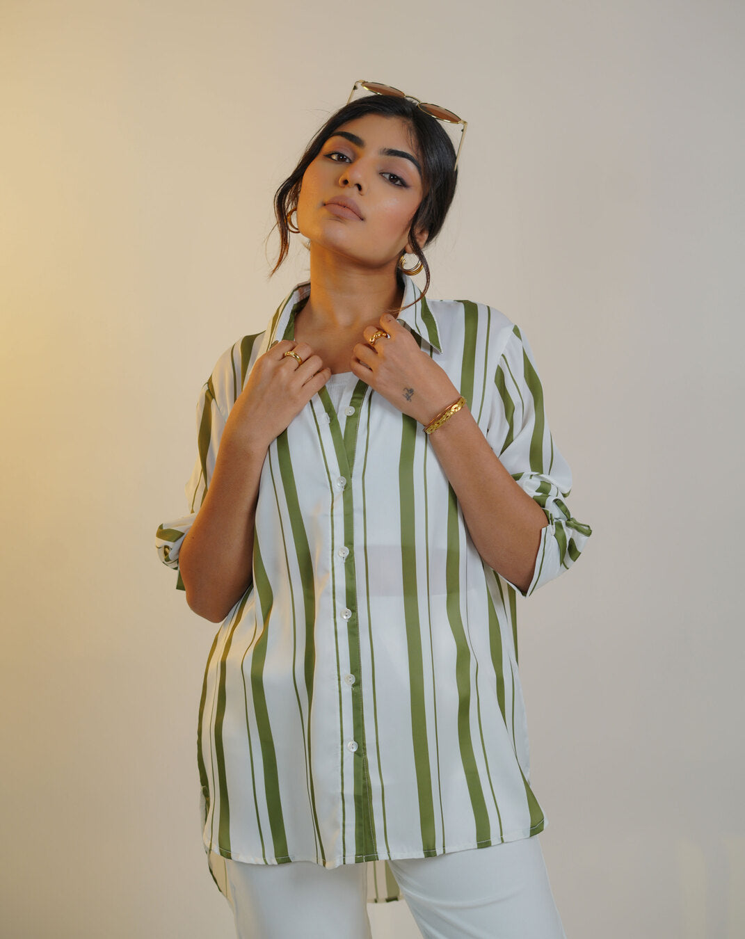 Featuring olive green digital stripes on Italian satin, this shirt is a modern twist on classic elegance. Soft, comfortable, and versatile — a perfect upgrade to your wardrobe essentials.