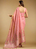 Pink Pure Cotton Jamdani Saree with Allover Leaf Butti & Floral Weaving