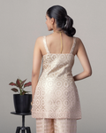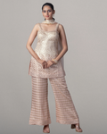 This Pink Palazzo Top Set in Pure HO Silk is versatile, lightweight, and ideal for small festive occasions. The flowing palazzo adds comfort to the chic ethnic design.