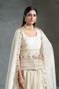 Pure Off-White Viscose Banarasi Tissue Lehenga Choli with Four-Side Embroidered Dupatta