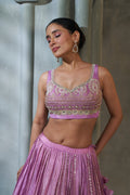 Pure Purple Viscose Banarasi Tissue Lehenga Choli with Four-Side Embroidered Dupatta