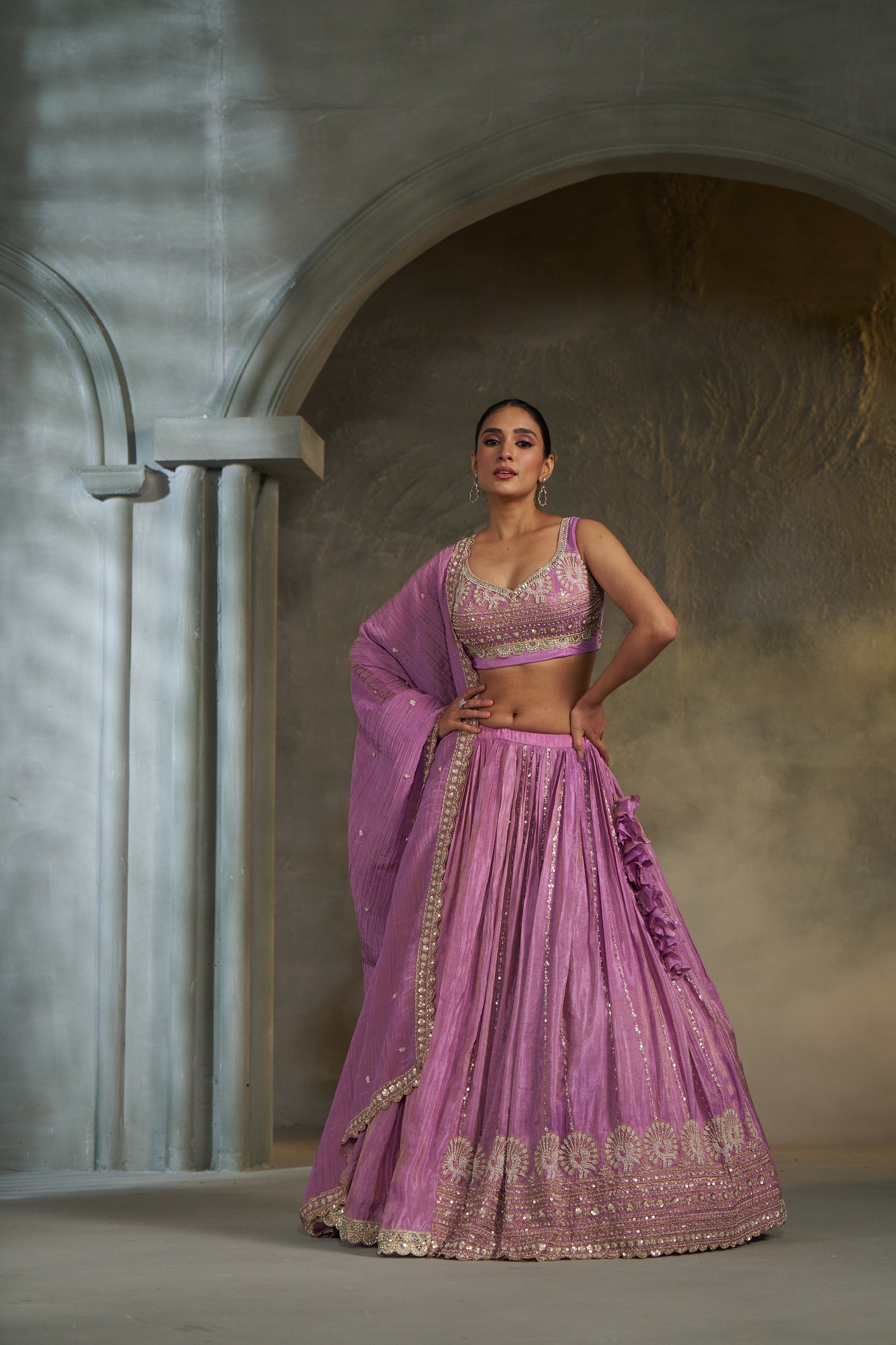 Flair: Stitched 5-meter lehenga flair for a voluminous, royal silhouette