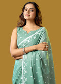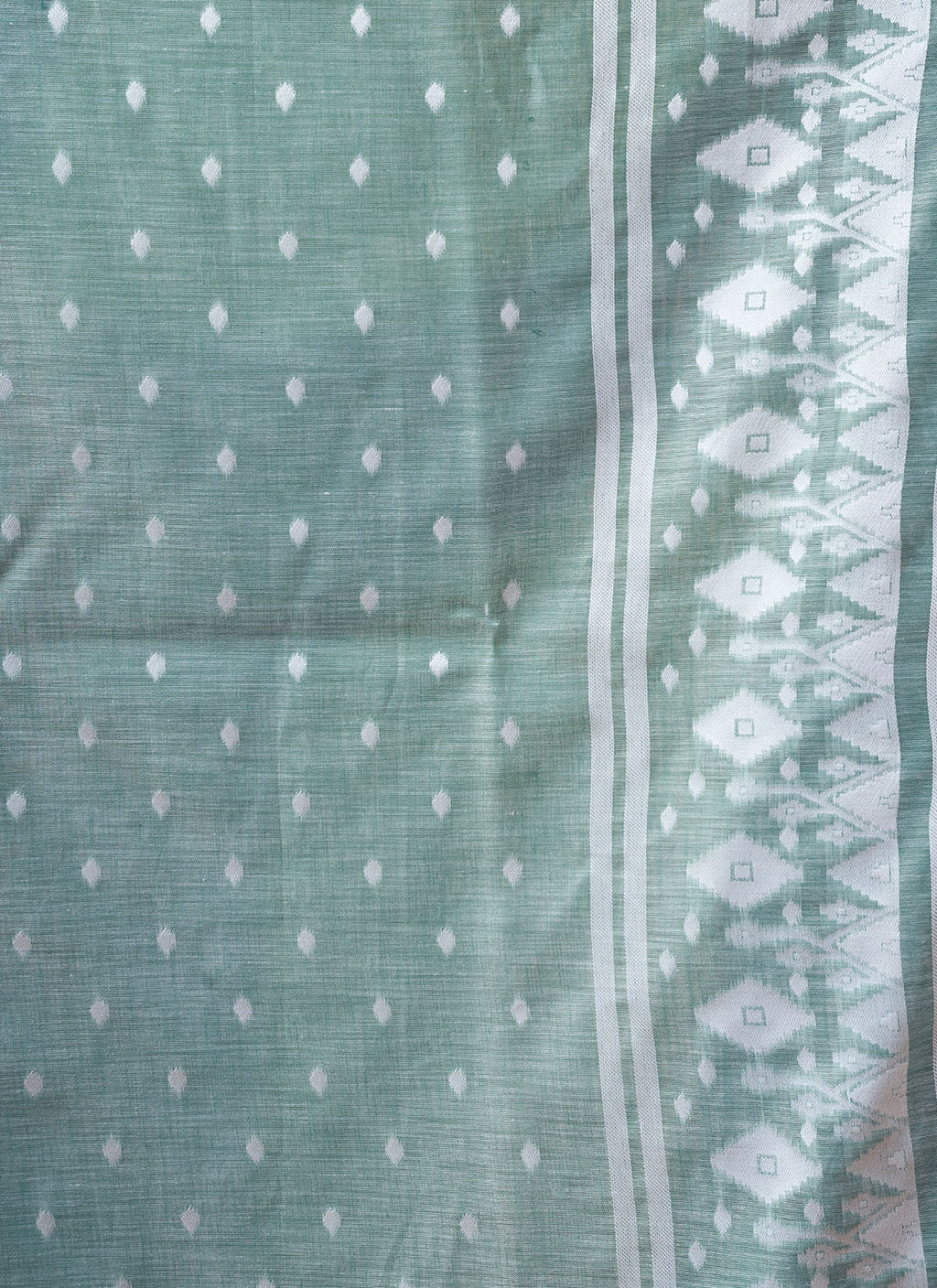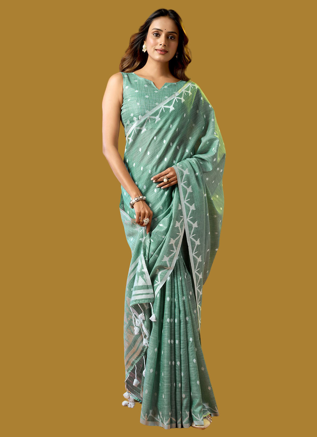 Rama Green Pure Cotton Jamdani Saree with Floral & Leaf Butti Weaving