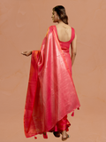 Red Plain Tissue Silk Saree with Contrast Weave Border