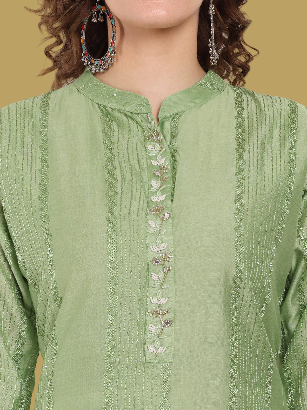 Rich green chanderi silk kurti for ethnic sophistication