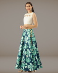 Royal Blue Satin Silk Anarkali Lehenga with Elegant Digital Floral Prints