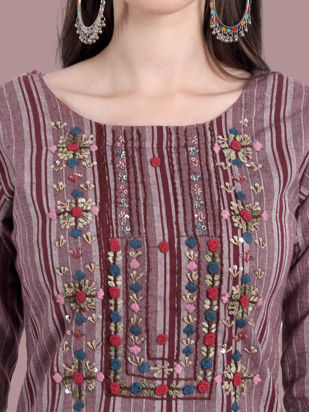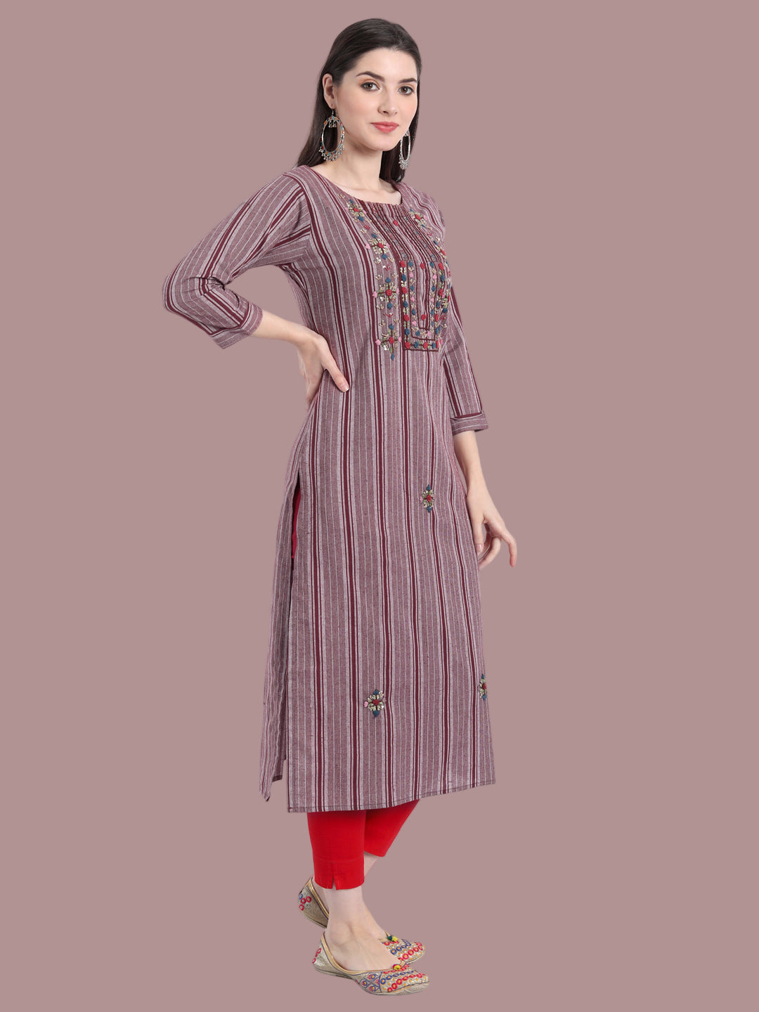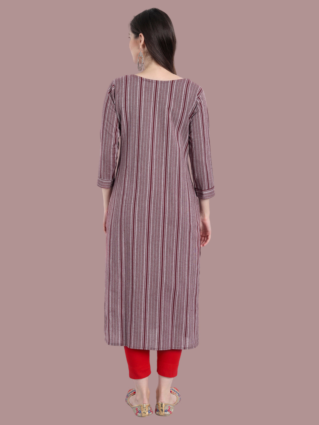 This mauve kurti in khadi cotton offers a relaxed fit and earthy elegance. Sizes M to 7XL.