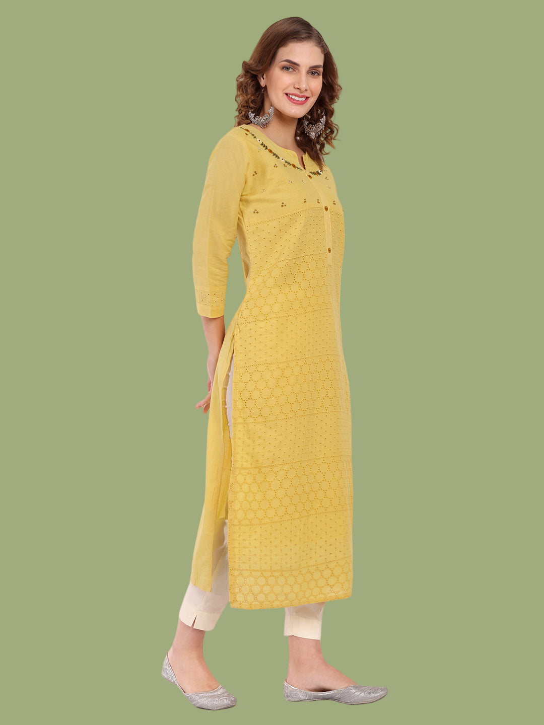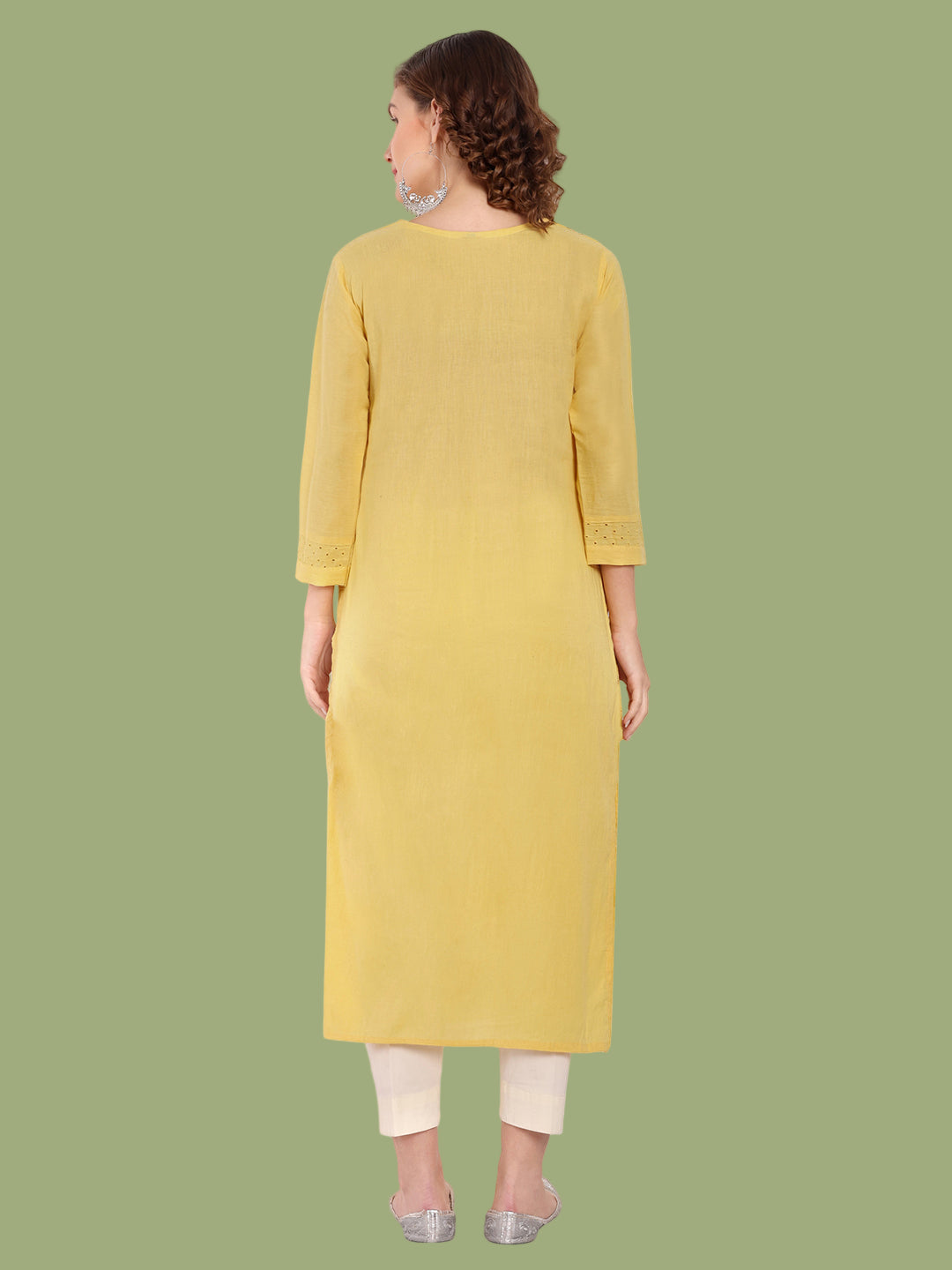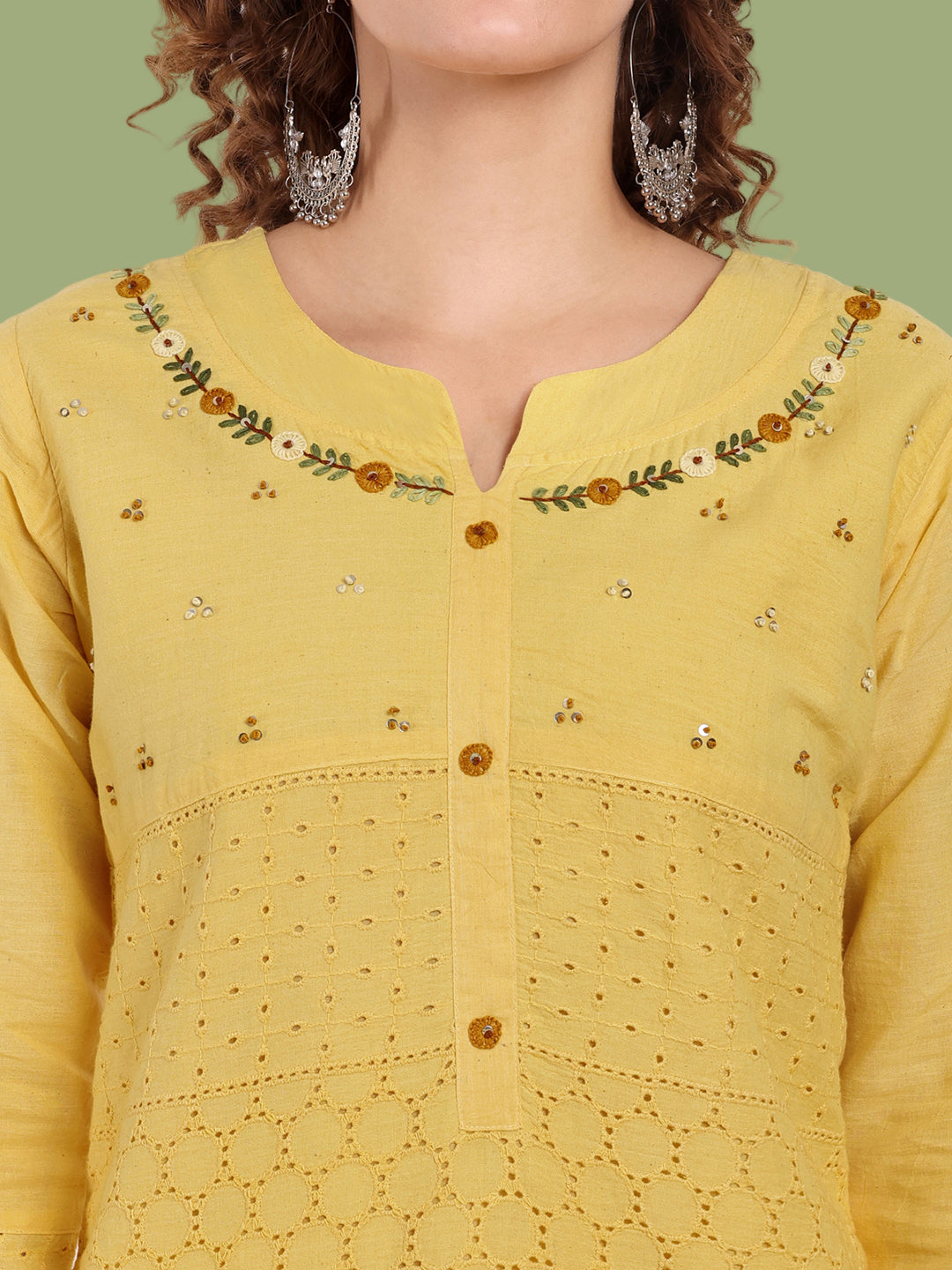 Sunny yellow cambric cotton kurti for joyful ethnic wear