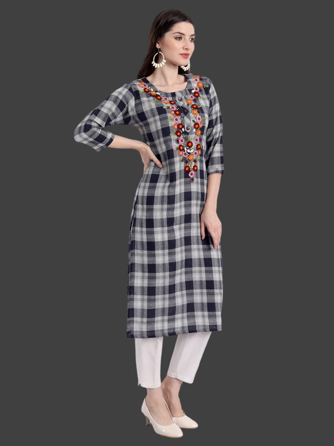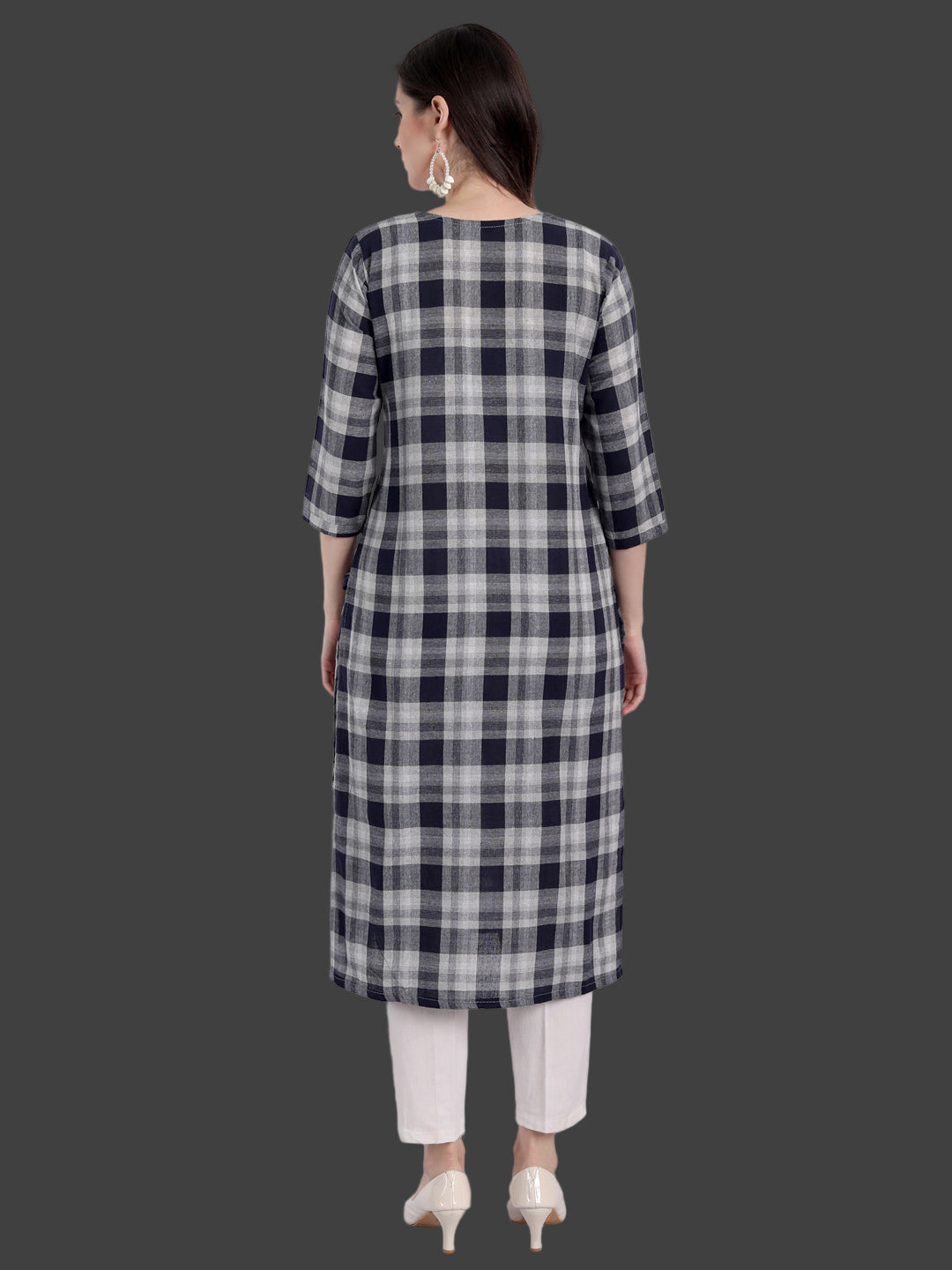 A classic black khadi cotton kurti with a straight fit. Ideal for office, casual, or festive wear. Available in M to 7XL.