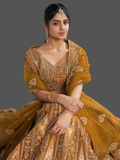 Vibrant mustard lehenga in Banarasi silk for festive flair