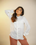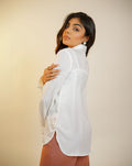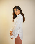 An effortlessly stylish satin shirt in pure white, designed with luxurious Italian satin fabric. Its soft sheen and refined tailoring make it perfect for workwear, casual outings, or sophisticated evenings.